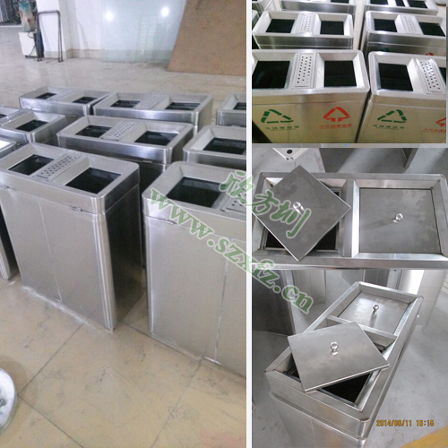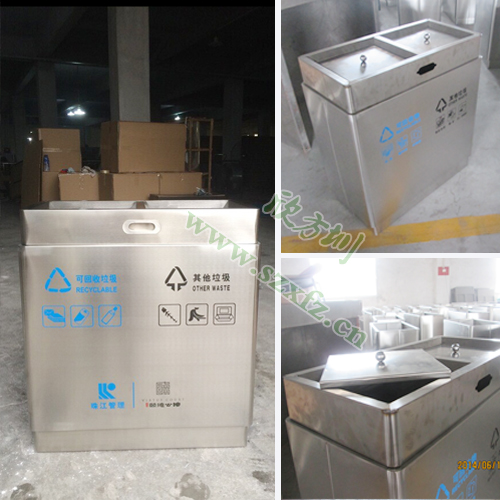 這批C185分類環(huán)保垃圾桶是采用304#優(yōu)質(zhì)不銹鋼材料模壓成型,厚度足1.2mm,里面配置了厚度為0.4mm的鍍鋅板內(nèi)桶,堅(jiān)固耐用,不易破損。垃圾桶外觀為方形,閃爍著金屬的亮澤,高雅美觀,在制作方面也有精良的做工,注重細(xì)節(jié)的處理,做到無(wú)利口,不傷手! 桶身雙分類,正面絲印有“不可回收”和“其他垃圾”的分類標(biāo)志,具有耐火安全,抗高低溫,適合各種惡劣氣候條件,再加上產(chǎn)品表面光滑,亮麗廣泛適用于各種場(chǎng)所,是電梯口、寫字樓、學(xué)校、物業(yè)、賓館、酒店、機(jī)場(chǎng)、汽車站等擺放場(chǎng)地的首選。