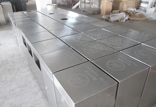 作為一家知名購物中心,采購不銹鋼垃圾桶要求極高。垃圾桶的選擇不容馬虎,兩者搭配得融入購物中心文化。我們欣方圳公司業(yè)務(wù)部人員,根據(jù)包頭茂業(yè)百貨來的圖樣,大規(guī)模的生產(chǎn)一款C60不銹鋼果皮箱。本款采購的不銹鋼果皮箱規(guī)格為:350*350*720mm,顏色為砂光。采用201#不銹鋼厚度1.2mm,其中8個(gè)帶煙灰缸,42個(gè)不帶煙灰缸,內(nèi)桶為鍍鋅板。正面蝕刻茂業(yè)百貨字樣及標(biāo)識。此款不銹鋼垃圾桶頂上開門,頂上蓋子固定活動。外部光滑明亮,簡單大方的方形設(shè)計(jì),高貴不失風(fēng)度。結(jié)合包頭茂業(yè)百貨購物中心,讓更多的顧客有愉快的心情購物。