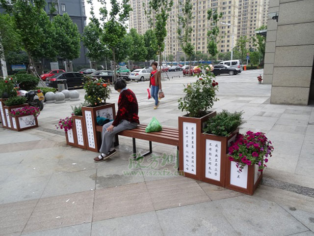 欣方圳市政塑木花箱最大的優(yōu)點就是在美化了環(huán)境的同時,還增加了其使用年限,有限的防止了浪費木材,側(cè)面的等于對環(huán)境做出了貢獻。另外欣方圳的塑木花箱有限的防止了蟲蟻等的破壞,很多孩子容易被美麗的鮮花所吸引,會離花箱很近,但普通實木花箱時間久,會被腐蝕,里面有很多螞蟻,蟲子,很不衛(wèi)生,而塑木花箱能有效的防止這一缺憾。還能夠滿足客戶對各種規(guī)格、尺寸、形狀、厚度的需求,同時也可提供多種設(shè)計、顏色及木紋。還具有與原木相同的加工性能,可釘、可鉆、可切割、粘接,用釘子或螺栓連接固定,表面光滑細膩、無需砂光和油漆。而其油漆附著性好,亦可根據(jù)個人喜好上漆。就例如圖上這款花箱上面還能應客戶要求描繪中國魅力的風格。
