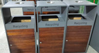 戶外鋼木分類(lèi)果皮箱成福州園林景觀環(huán)境一部分
