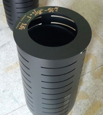戶外圓形鋼制烤漆垃圾桶桶頭絲印