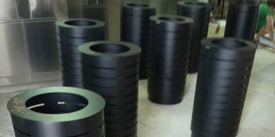 • 產品材質:戶外圓形鋼制烤漆垃圾桶采用優(yōu)質冷軋鋼經除油-除銹-表調-磷化處理后,表面采用汽車靜電粉末噴漆工藝,噴塑粉主要有丙烯酸粉末、聚酯粉末等。雙層防銹,漆面色澤耐久;