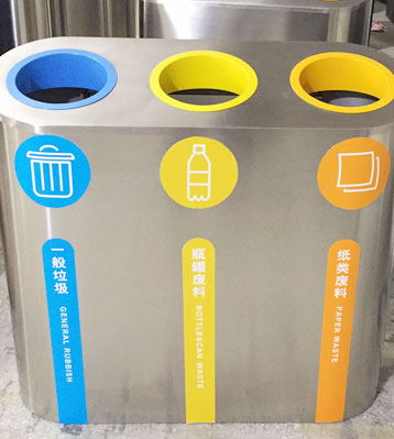 室內(nèi)斜面投口地鐵不銹鋼三分類垃圾桶批量生產(chǎn)圖