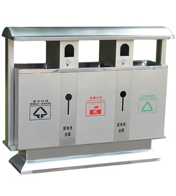• 使用范圍:市政戶外三分類不銹鋼垃圾桶表面光滑、亮麗,是電梯口、寫字樓、學(xué)校、物業(yè)、賓館、酒店、機(jī)場(chǎng)、汽車站等擺放的首選。