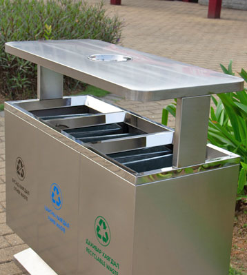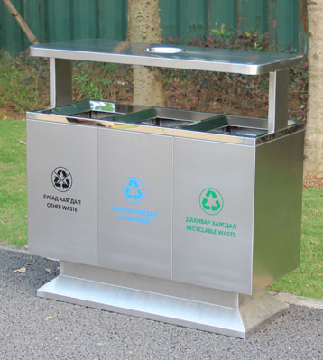 欣方圳不銹鋼戶外三分類果皮箱批量生產(chǎn)圖