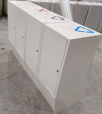 寫字樓辦公區(qū)不銹鋼四分類果皮箱細(xì)節(jié)圖