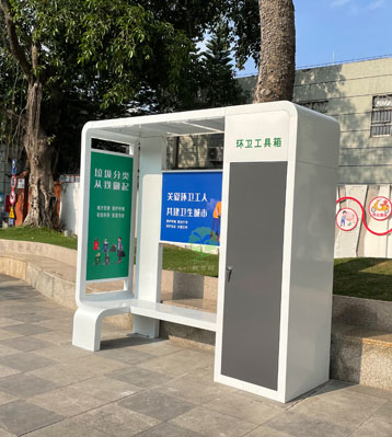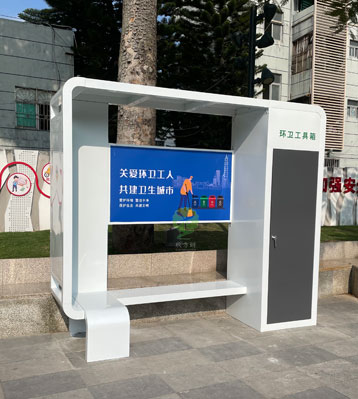 • 產(chǎn)品名稱:深圳環(huán)衛(wèi)工人休息亭驛站工具箱休息座椅