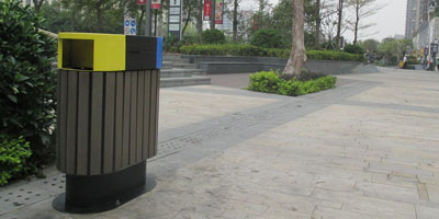 欣方圳戶(hù)外烤漆鋼木分類(lèi)垃圾桶戶(hù)外擺放圖