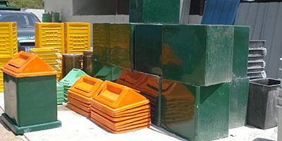 玻璃鋼垃圾桶桶身和內(nèi)膽部分,采用高級玻璃鋼材質(zhì)一次成型,經(jīng)過打磨、除塵 、噴漆等一系列后期工藝然后出成品。
