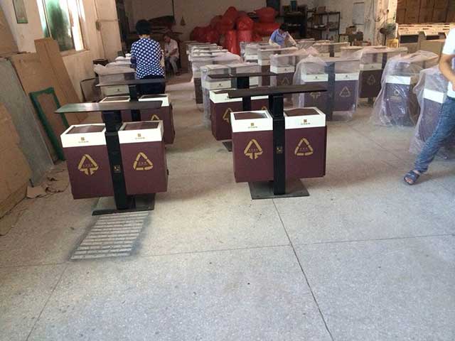 欣方圳戶外鋼板分類垃圾桶!